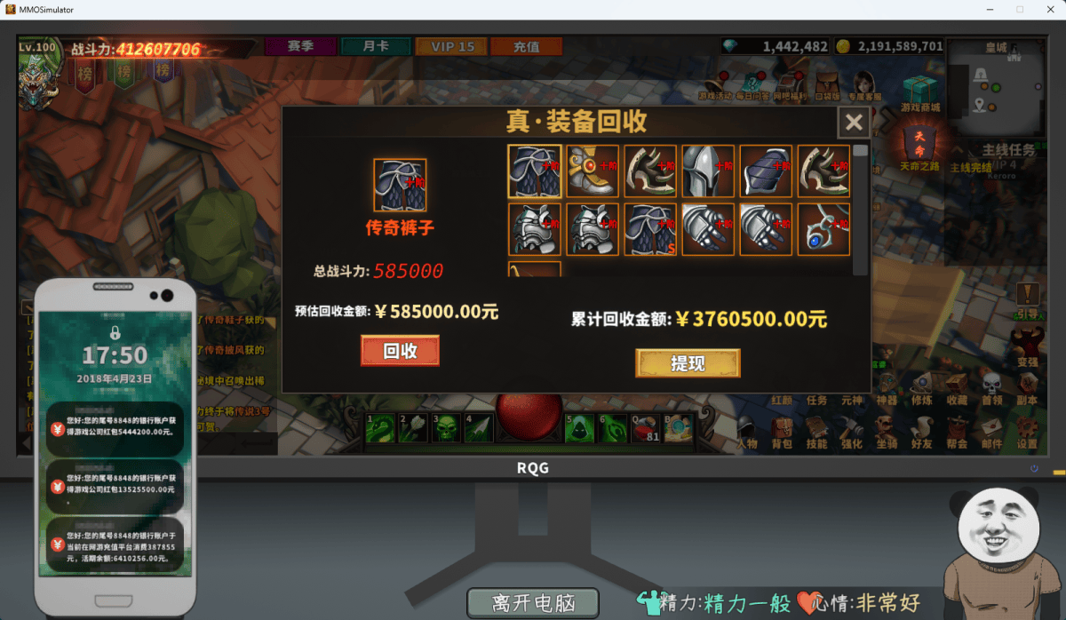 Game 中国式网游 这小游戏圆了我传奇梦😄先玩的正常模式,然后体验了下爽文模式体验了一下氪佬是真的舒服啊。不过感觉套路还是有点少